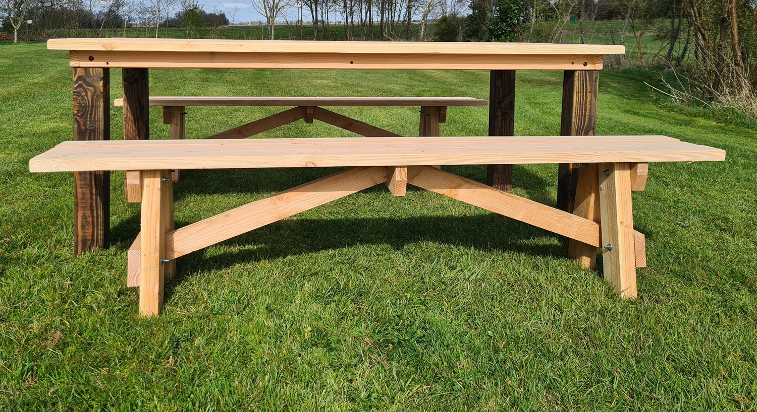 Douglas is een duurzame houtsoort; de Douglas spar is een snelgroeiende boom waarvan het hout winterhard en van hoge kwaliteit is. Hierdoor gaat deze tuintafel wel 10 tot 15 jaar mee!